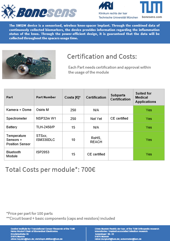 - 07/2022: To date, using initial 3D-printed and/or encapsulated Bluetooth-enabled SmartSpacer prototypes, we have been able to capture live intra-articular images and videos using ex vivo human and porcine knee samples. Furthermore, the built-in acceleration and temperature sensors show perfect functionality even in the encapsulated state.